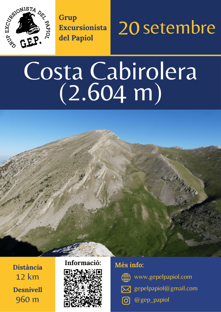 Categories Fotogaleria 2025 Costa Cabirolera 2.604 m Post author Per gepelpapiol Post date 6 Setembre, 2025 Sense comentaris a Costa Cabirolera 2.604 m Compártelo: Feu clic per compartir a X (S'obre en una nova finestra) X Feu clic per compartir al Facebook (S'obre en una nova finestra) Facebook M'agrada S'està carregant... ← Bar de festa major → Sopar del GEP a la fresca Deixa un comentari Cancel·la la resposta Δ